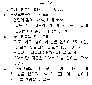[과목 구분 없음] <보기>에서 국내우편물 제한 부피 및 무게에 관한 설명으로 옳은 것을 모두 고른 것은?
