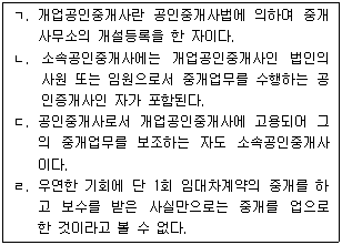- "ㄷ" : 중개인은 중개를 하는 자로서, 공인중개사와 부동산중개사가 있음