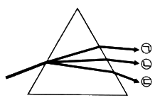 [파동광학] 그림과 같은 삼각형의 유리 프리즘에 백색광을 입사시킬 때, 프리즘을 통과한 후 색의 배열이 옳은 것은?