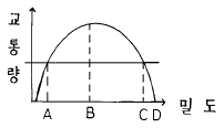 다음 그림은 교통량과 밀도와의 관계를 보여주고 있다. 여기서 용량상태를 의미하는 밀도는?
