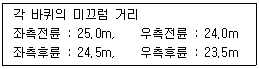 한 차량이 직선 미끄럼을 하여 각 바퀴의 미끄럼흔적의 길이가 다음과 같을 때 이 차량의 미끄럼 거리는?