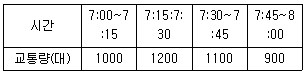 첨두시간의 교통상황을 알아보기 위해 조사한 교통량이 아래와 같을 때, 첨두시간계수는 얼마인가?