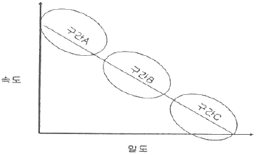 현장 관측자료를 이용한 속도와 밀도의 관계가 아래와 같을 때, 다음 설명 중 옳지 않은 것은?