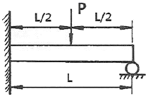 그림과 같이 한쪽 끝을 지지하고 다른 쪽을 고정한 보가 있다. 보의 단면은 직경 10cm의 원형이고 보의 길이는 L이며, 보의 중앙에 2094N의 집중하중 P가 작용하고 있다. 이 때 보에 작용하는 최대굽힘응력이 8MPa라고 한다면, 보의 길이 L은 약 몇 m인가?