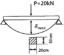 단면 20cm×30cm, 길이 6m의 목재로 된 단순보의 중앙에 20kN의 집중하중이 작용할 때, 최대 처짐은 약 몇 cm인가? (단, 세로탄성계수 E=10GPa이다.)