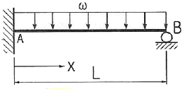 다음과 같이 길이 L인 일단고정, 타단지지보에 등분포 하중 ω가 작용할 때, 고정단 A로 부터 전단력이 0이 되는 거리(X)는 얼마인가?