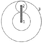 그림과 같은 유성기어열에서 태양기어(1)를 시계방향으로 100rpm, 암을 시계방향ㅇ로 210rpm으로 회전시켰을 때 링기어(3)의 회전수와 방향은? (단, 태양기어(1)의 잇수는 40개, 유성기어(2)의 잇수는 20개, 링기어(3)의 잇수는 80개이다.)