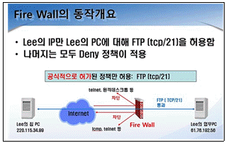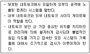 아래 내용은 방화벽의 구성 요소 중 무엇에 대한 설명인가?