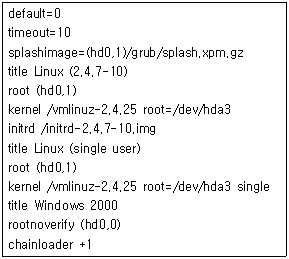 [리눅스 실무의 이해] 다음은 부팅과 관련된 파일의 일부이다. 이를 설명한 내용 중 알맞는 것은?