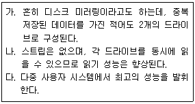[리눅스 실무의 이해] 다음은 RAID의 형태별 분류 중 무엇에 관한 설명인가?
