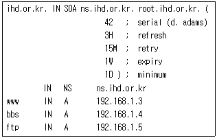 - ③ SOA는 해당 도메인(ihd.or.kr)에 대해서 여기서 설정한 네임서버가 모든 정보를 가지고 있음을 선언하는 것이다.