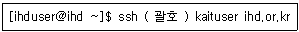 [리눅스 활용] 로컬 시스템의 계정과 다른 원격지 계정으로 ssh 서버에 접속하려고 한다. 다음 ( 괄호 ) 안에 들어갈 내용을 알맞은 것은?
