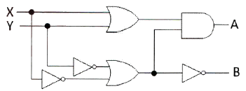 다음 논리회로에서 입력 X는 0, Y는 1일 때 출력값 및 논리회로와 등가인 논리레이트(Logic Gate)를 표현한 것으로 옳은 것은?