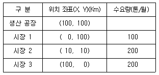 생산공장의 위치: (30, 40), 수요량: 200