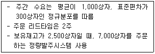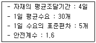 아래와 같은 조건 일 때, 재발주점은 얼마인가? (단, √2 = 1.414, √3 = 1.732, √4 = 2, √5 = 2.236 이며, 소수점 첫째자리에서 반올림 하시오.)