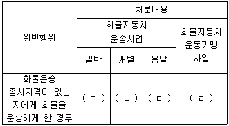 [물류관련법규] 화물자동차 운수사업법령상 위반행위에 관한 ( )안의 과징금의 금액기준이 옳게 연결된 것은? (단, 과징금의 가감은 고려하지 않음) (단위: 만원)