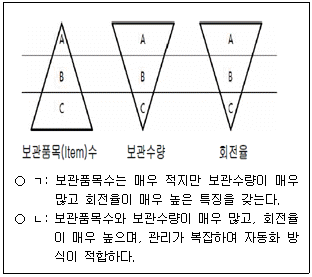 보관품목수, 보관수량, 회전율에 따른 보관유형을 올바르게 표시한 것은?