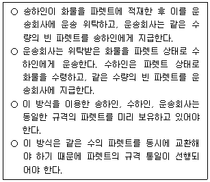 다음 설명에 모두 해당하는 파렛트 풀(pool) 시스템은?