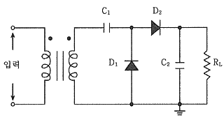 [방송통신일반] 다음 회로에서 RL 양단에 나타나는 정류출력전압은? (단, 입력에는 최대치 Vm인 사인파가 인가된다.)