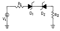 [방송통신일반] 다이오드 D1, D2의 항복 전압을 Vz라면 회로에서 D1, D2가 모두 차단(OFF)될 조건으로 옳은 것은?