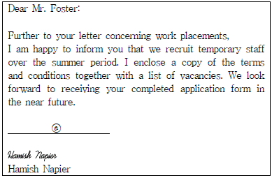 다음 Business letter에서 빈칸 ⓐ에 들어갈 끝맺음 인사말로 올바르지 않은 것은?