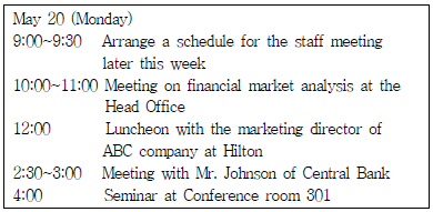 다음은 비서의 일정표 작성과 운용에 관련된 설명이다. 다음 중 가장 옳지 않은 것은?