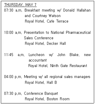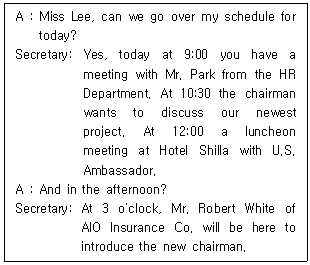 비서의 상사 일정관리와 관련하여 아래의 내용 중 가장 적절한 것은?