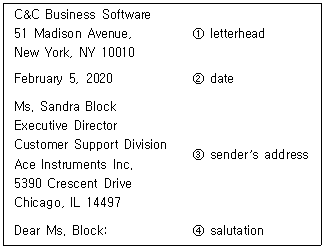 다음 영문 편지의 구성요소의 명칭이 바르지 않은 것은?