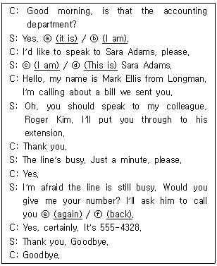 다음 전화 내용을 영어로 표현한 것 중 가장 부적절한 것은?