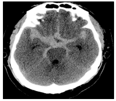 [응급처치학개론] 40대 여자가 갑자기 벼락 치듯 심한 두통과 의식저하로 응급실에 내원하였다. 뇌 CT 영상이 다음과 같을 때 진단으로 옳은 것은?