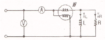 그림과 같은 회로에서 각 계기의 지시값이 ⓥ는 180V, Ⓐ는 5A, W는 720W라면 이 회로의 무효전력은?