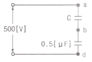 그림과 같은 회로에서 b-d 사이의 전압을 50[V]로 하려면 콘덴서 C의 정전용량은 몇 [μF] 인가?