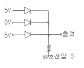 그림과 같은 다이오드 게이트 회로에서 출력전압은? (단, 다이오드내의 전압강하는 무시한다.)