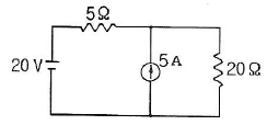 그림에서 저항 20 Ω에 흐르는 전류는 몇 A 인가?