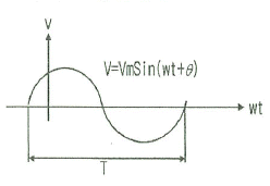 [소방전기회로] 그림과 같은 정현파에서 v=Vmsin(wt+θ)의 주기 T로 옳은 것은?