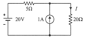 회로에서 저항 20Ω에 흐르는 전류(A)는?