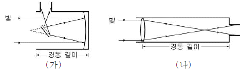 그림은 두 천체 망원경의 빛의 진행 경로를 나타낸 것이다.
