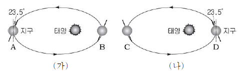 그림 (가)는 현재 지구 자전축의 방향을, (나)는 지구 자전축의 방향이 바뀐 모습을 나타낸 것이다.