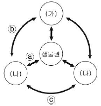 ⓐ~ⓒ를 지구 환경 구성 요소의 상호 작용과 관련하여 설명할 때, (가)~(다)에 해당하는 것으로 바르게 짝지은 것은? (순서대로 가, 나, 다)