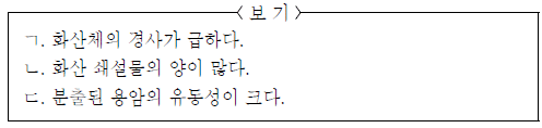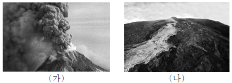 그림 (가), (나)는 서로 다른 지역에서 화산이 분출하는 모습을 나타낸 것이다.