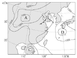 그림은 어느 날 우리나라 주변의 일기도에 고기압과 저기압을 기호로 나타낸 것이다.