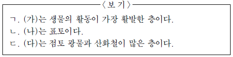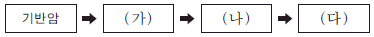 그림은 성숙한 토양이 만들어지는 과정에서 생성되는 토양층을 순서대로 나타낸 것이다. (가), (나), (다)는 심토, 모질물, 표토 중 하나이다.