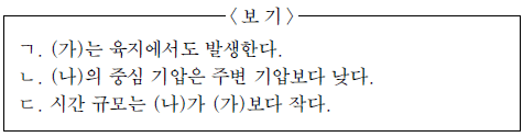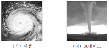 그림 (가)와 (나)는 태풍과 토네이도의 모습을 나타낸 것이다.