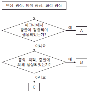 그림은 서로 다른 광상을 구분하는 과정을 나타낸 것이다.