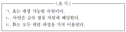 [과목 구분 없음] 그림은 지하자원의 종류와 그 예를 나타낸 것이다.