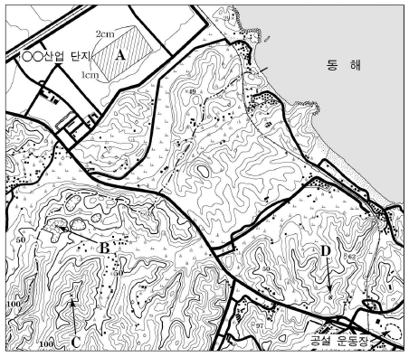 지도를 읽고 분석한 내용으로 옳지 않은 것은? [3점]