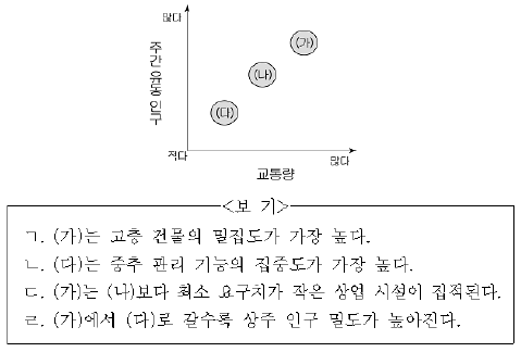 대도시 내부 지역 가~다에 대한 설명으로 적절한 것을 <보기>에서 모두 고른 것은?