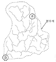 그림은 북한강의 하계망을 나타낸 것이다. A지역이 B지역에 비해 뚜렷하게 나타날 수 있는 현상을 추론한 것으로 옳은 것은?