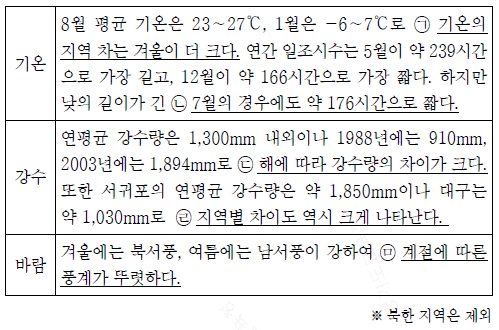 다음은 우리나라의 기후 특성을 설명한 것이다. 밑줄 친 (ㄱ)~(ㅁ)의 원인으로 옳지 않은 것은? [3점]