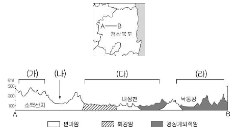 [과목 구분 없음] 그림은 A-B의 단면을 나타낸 것이다. (가)~(라)에 대한 설명으로 알맞은 것은? [3점]